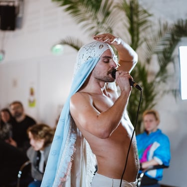 Dictatorial body, religious body, colonial body, family body. Oppression is a body. A vital process. Oppression is internal, anatomical, structural. Oppression integrates, lodges, incorporates itself, compresses organs, muscles, becomes a body, the body, vital, as if a new organ, or an organ that has always existed, without us realizing it, an integral part. Oppression is an ancestral routine. The oppressed oppress. Before and after are confused, forgotten. Oppressors - aren't we all? FLÓBÉR is an interdisciplinary and activist autobiographical performance that addresses the proliferation of dictatorial and colonial beliefs and practices in the family and contemporary society.