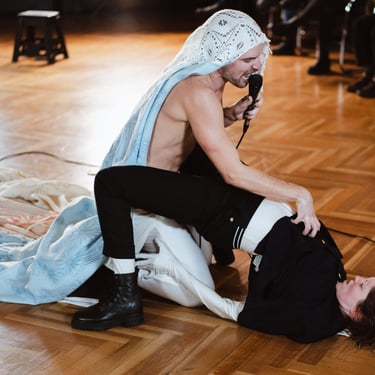 This performance explores the perspectives of two white, queer nonbinary people, one Portuguese and one US American, formerly living in Portugal. This intercontinental dialogue allows the performers to reflect the nation’s instrumentalization of the family unit, within two different cultural confinements.